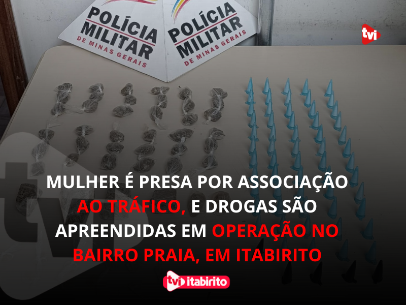 Mulher é presa por associação ao tráfico e drogas são apreendidas em operação no bairro Praia, em Itabirito