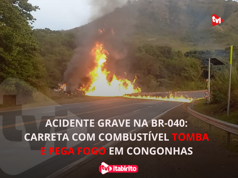 Congonhas (MG) — Um grave acidente interditou totalmente a BR-040, na altura do município de Congonhas, na Região Central de Minas Gerais, na manhã desta terça-feira (5 de agosto). Um caminhão-tanque, que transportava produto perigoso, tombou e explodiu, causando um incêndio de grandes proporções e interrompendo completamente o tráfego nos dois sentidos da rodovia.