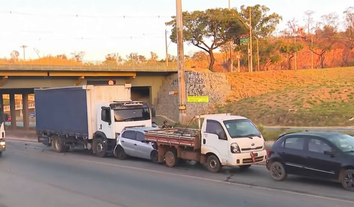 Belo Horizonte, 14 de agosto de 2025 – Um engavetamento envolvendo seis veículos deixou uma mulher ferida na manhã desta quinta-feira no Anel Rodoviário, sentido Vitória, na altura do bairro Caiçara, região Noroeste de Belo Horizonte.
