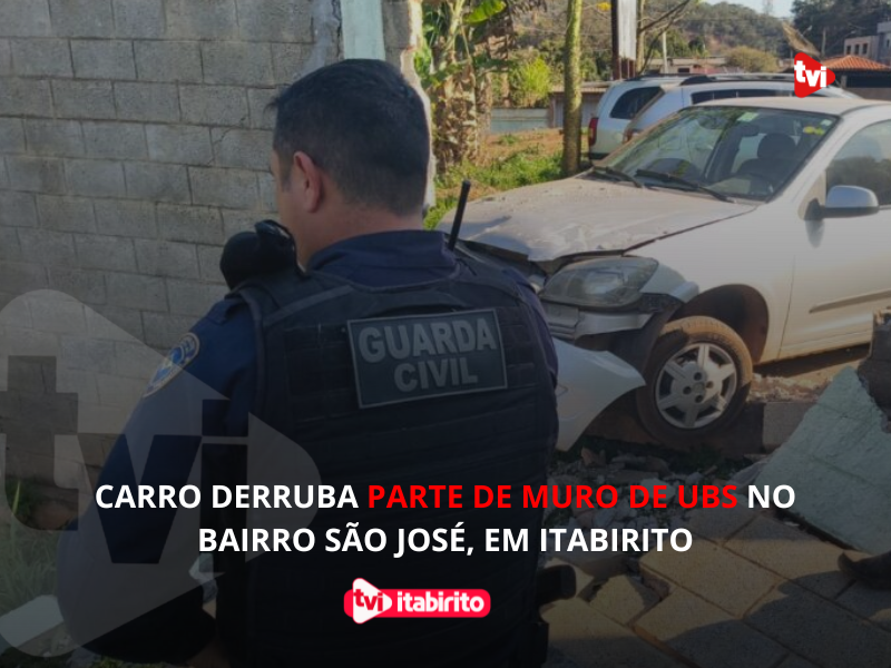 Carro derruba parte de muro de UBS no bairro São José, em Itabirito