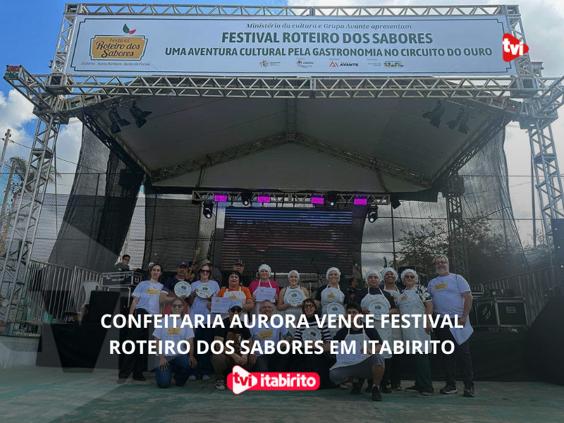 A Confeitaria Aurora, do bairro Bela Vista, conquistou o primeiro lugar na etapa local do Festival Roteiro dos Sabores – Uma Aventura Cultural pela Gastronomia no Circuito do Ouro, realizada neste sábado (30). O evento, que uniu música e culinária, premiou os destaques da gastronomia de Itabirito e levou ao público apresentações culturais no distrito de Acuruí.