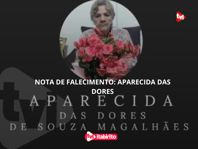 É com profundo pesar que a comunidade de Itabirito recebeu a notícia do falecimento de Aparecida das Dores de Souza Magalhães, aos 68 anos. Nascida em 1957, Aparecida deixa familiares e amigos enlutados, sendo lembrada pelo carinho e pela convivência com todos que a conheceram.
