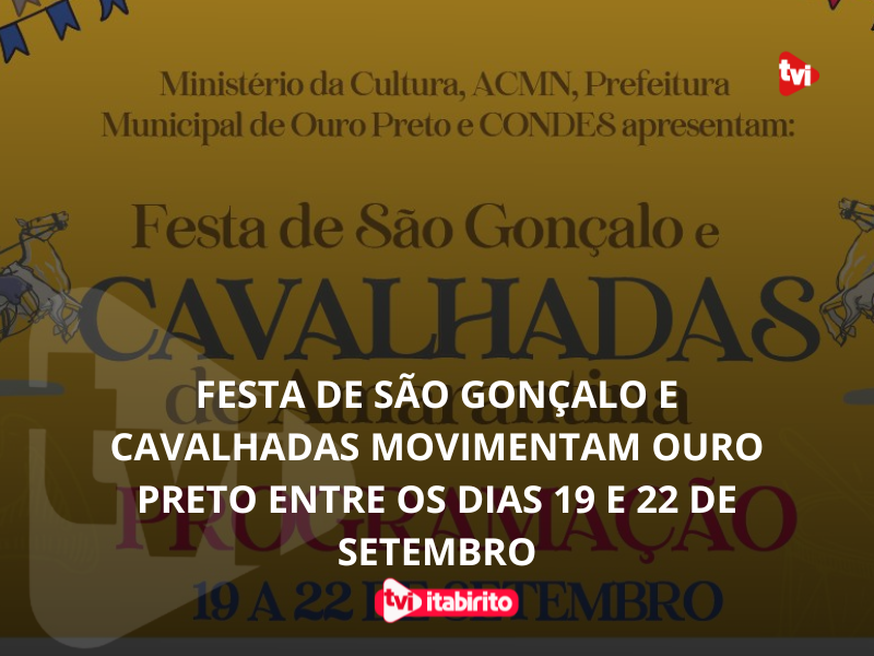 A comunidade de Amarantina, distrito de Ouro Preto, se prepara para viver dias de fé, música e tradição com a Festa de São Gonçalo e Cavalhadas de Amarantina, que acontece de 19 a 22 de setembro. O evento, realizado pelo Ministério da Cultura, ACMN, Prefeitura Municipal de Ouro Preto e CONDES, reúne manifestações religiosas, apresentações musicais e a tradicional encenação das cavalhadas, patrimônio cultural da região.