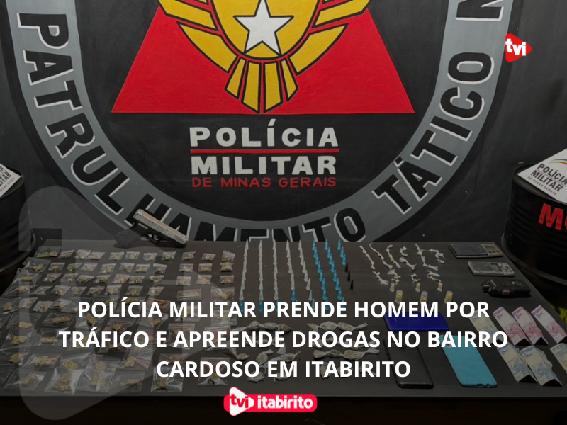 A Polícia Militar prendeu um homem de 23 anos por tráfico de drogas no bairro Cardoso, em Itabirito (MG), na madrugada de domingo (21). A ação ocorreu após denúncia anônima, que apontava movimentação suspeita em uma residência da região.