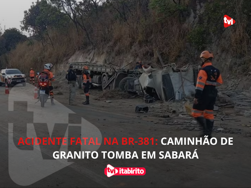 Um acidente fatal envolvendo um caminhão carregado com granito resultou na morte do motorista e na interdição total da BR-381, em Sabará, na Região Metropolitana de Belo Horizonte. O tombamento ocorreu por volta das 4h30 da manhã desta segunda-feira (29), no quilômetro 483 da rodovia, na pista sentido capital mineira.