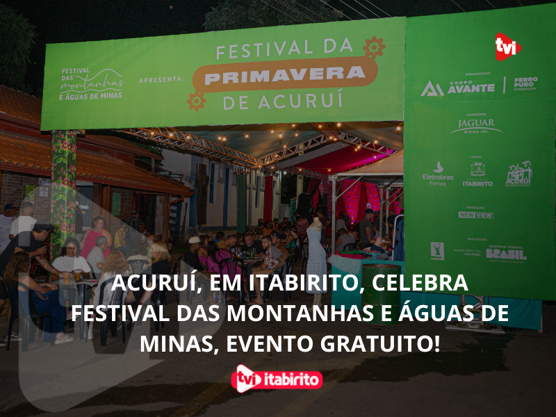 O distrito de Acuruí, em Itabirito (MG), será o palco da 4ª edição do Festival das Montanhas e Águas de Minas – Edição Primavera nos dias 4 e 5 de outubro. O evento, que tem entrada 100% gratuita, será realizado na Praça Principal da localidade e celebra o tema “Sabores e cores da Primavera”, com uma programação diversificada que inclui shows musicais, gastronomia, teatro e atividades culturais.