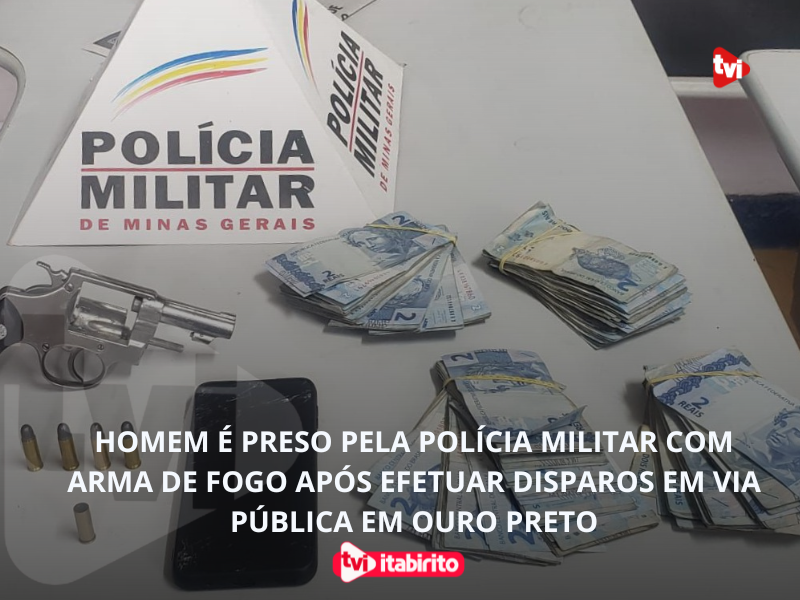 Homem é preso pela Polícia Militar com arma de fogo após efetuar disparos em via pública em Ouro Preto